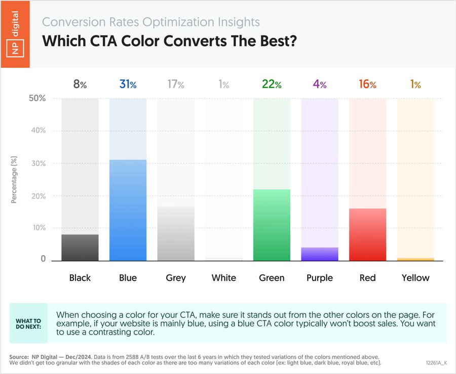 Trong thế giới digital marketing, việc lựa chọn màu sắc cho nút gọi hành động (CTA) không phải là chuyện đùa. Neil Patel, chuyên gia marketing nổi tiếng, vừa chia sẻ những insights đáng giá từ 2588 bài kiểm tra A/B được thực hiện trong 6 năm qua.