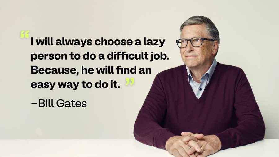 Như Bill Gates từng nói: "Tôi chọn một người lười để làm một công việc khó. Vì một người lười sẽ tìm ra cách dễ dàng để làm nó."